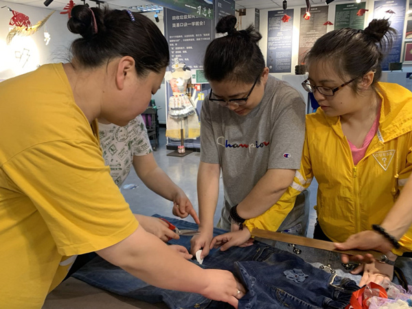 居民們體驗(yàn)改造舊衣服。陳驊攝