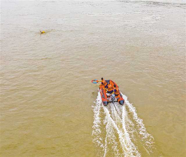 5月21日,大渡口區(qū)滑石灘長(zhǎng)江邊,有游泳者漂浮帶破裂,救援隊(duì)隊(duì)員乘快艇火速前往援助。
