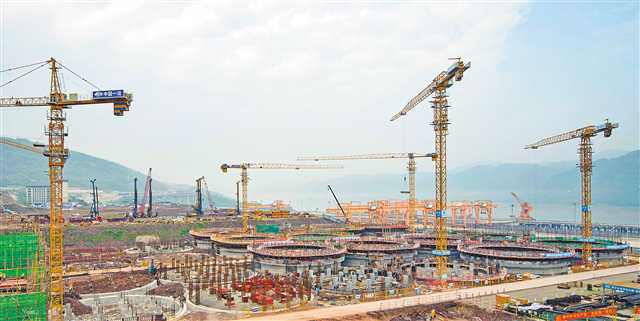 6月1日,萬州區(qū)中儲糧糧食倉儲物流項目(一期)工地,350多名工人正加緊建設(shè)淺園倉。淺園倉單個容量達1萬噸,一期項目總共要建25個淺園倉。