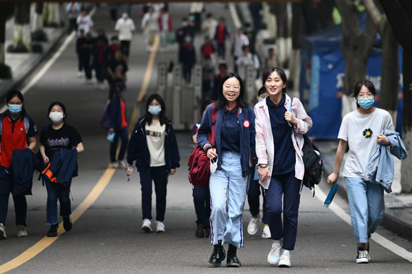 6月7日,重慶一中考點,高考考生走出考場。鄒樂攝