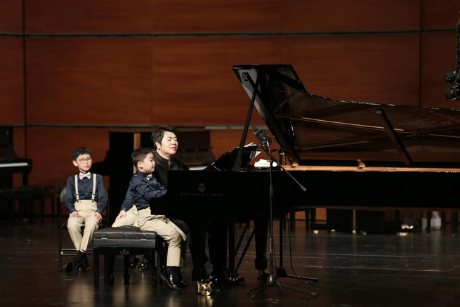 音樂會下半場,從少兒鋼琴海選比賽中脫穎而出的3名小選手,與郎朗攜手共奏了《第六交響曲田園》《天鵝》和《加勒比海盜主題音樂》。此外,在去年數(shù)輪海選賽中突出重圍的小琴童們,也站上了舞臺,與大師同奏。在此前的選拔賽中,許多孩子的父母對此都十分期待。這次能與郎朗同臺演奏,讓他們收獲了非常珍貴的體驗(yàn)。