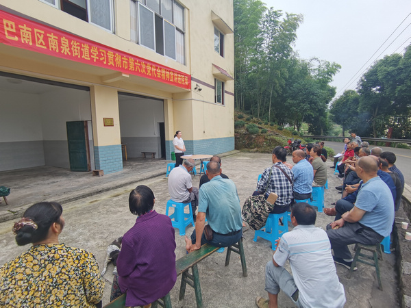 6月8日,在巴南區(qū)南泉街道新式村的農(nóng)家院壩內(nèi),村黨總支書記張麗娟正在為村民們宣講市第六次黨代會(huì)精神,村民們也常聊起近五年來,自己家和鄉(xiāng)村環(huán)境發(fā)生的美麗變化。而這樣的院壩會(huì),正以靈活多樣的形式在南泉街道的田間地頭、工廠車間、村會(huì)議室等地舉行,干部群眾們充滿了奮進(jìn)新時(shí)代的干勁和信心。