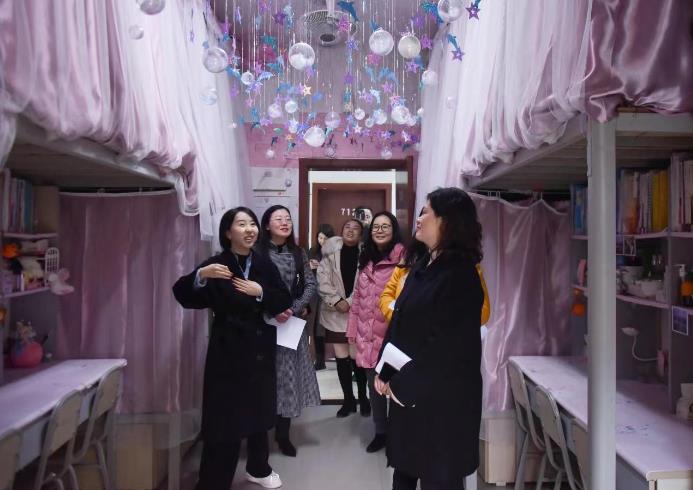 評審專家深入學(xué)生寢室對文明寢室進行評審。重慶工程職院供圖