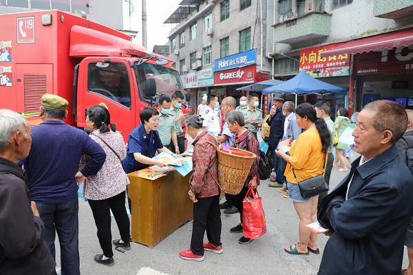 活動(dòng)中,消防宣傳人員在集鎮(zhèn)中心位置設(shè)置消防宣傳咨詢點(diǎn),擺放宣傳知識(shí)展板,利用消防宣傳車循環(huán)播放火災(zāi)警示教育片和消防公益廣告,以案說法,用通俗易懂的表達(dá)方式向群眾講解家庭防火須知、家庭電器使用注意事項(xiàng)、發(fā)生火災(zāi)后如何逃生、如何使用滅火器、如何撥打“119”報(bào)警等常識(shí)。