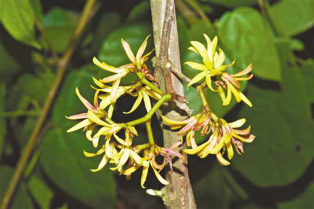 毛弓果藤為夾竹桃科弓果藤屬多年生藤狀灌木,生長(zhǎng)于保護(hù)區(qū)內(nèi)的林緣灌叢。