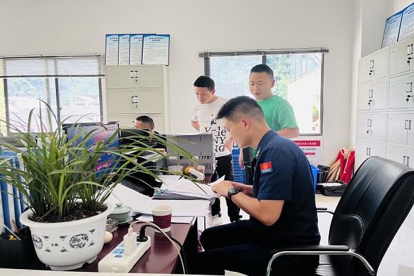 防火監(jiān)督員檢查基礎(chǔ)臺(tái)賬建立情況。石柱縣消防救援大隊(duì)供圖
