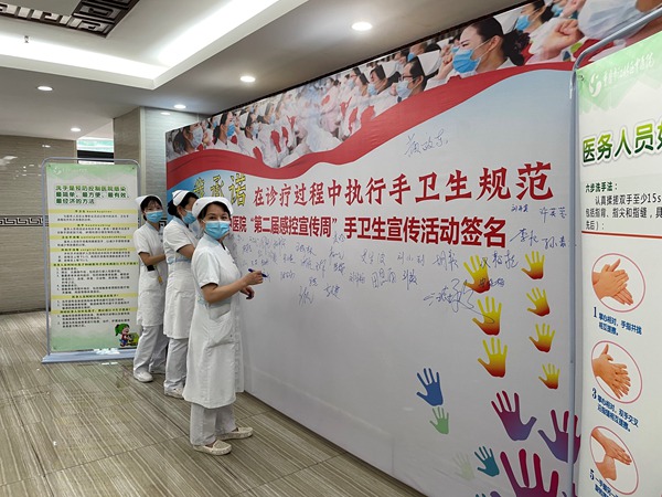 “感控踐行,人人有責”,為進一步加強感染預(yù)防與控制工作,提高工作人員感控意識,6月13日上午,江北區(qū)中醫(yī)院第二屆感控宣傳周手衛(wèi)生宣傳活動正式啟動,醫(yī)院各科室醫(yī)務(wù)人員紛紛在宣傳展示墻上簽上了自己的姓名,承諾自己在診療過程中嚴格執(zhí)行手衛(wèi)生規(guī)范,守住感控管理的底線,以更加優(yōu)質(zhì)的醫(yī)療服務(wù),護佑人民群眾的生命健康。