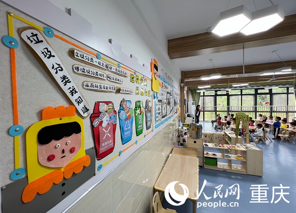 教室內(nèi)的垃圾分類宣傳墻。人民網(wǎng) 胡虹攝