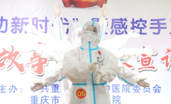 小品《細(xì)菌小伙來相親》,通過大家喜聞樂見的表演形式,傳達(dá)手衛(wèi)生科普知識;配樂朗誦《以青春之我,頌百年信仰》,抑揚頓挫,情感豐沛,獲得掌聲回應(yīng);舞蹈《病毒走開》,醫(yī)護(hù)人員穿上防護(hù)服,跳著整齊可愛的洗手舞,表達(dá)了對群眾的守護(hù)之心;詩朗誦《若我歸來》,表達(dá)了青年醫(yī)生的擔(dān)當(dāng)與奉獻(xiàn)……