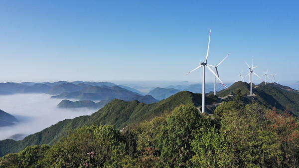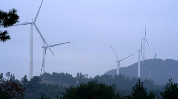 六月的重慶,雨水豐沛。同樣是雨后的清晨,豐都雪玉山上云霧繚繞,通往回山坪風電場的山路,一座座“大風車”正徐徐轉動,吞風吐電,“綠色電能”源源不斷地輸送至千家萬戶中。