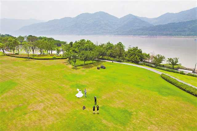 云陽(yáng)縣月光草坪,市民正在拍攝婚紗。(攝于6月14日)