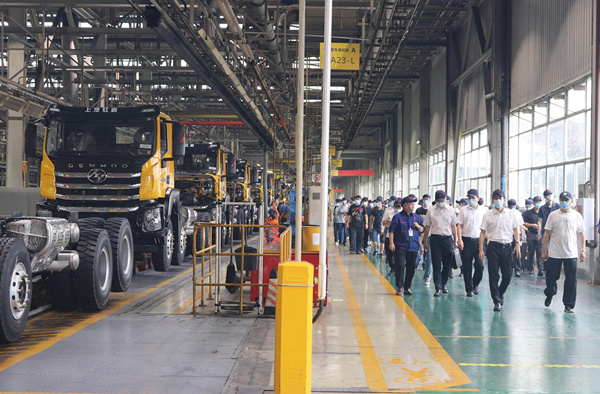 在上汽紅巖工作車(chē)間,一線崗位員工按照“兩單兩卡”要求,井井有條地開(kāi)展工作。上汽紅巖相關(guān)負(fù)責(zé)人以車(chē)間工作為基礎(chǔ),詳細(xì)講解了企業(yè)落實(shí)一線崗位安全生產(chǎn)責(zé)任的情況。兩江新區(qū)80余家規(guī)上工貿(mào)企業(yè)、限額以上商貿(mào)企業(yè)的代表,現(xiàn)場(chǎng)觀摩學(xué)習(xí),深有感觸。
