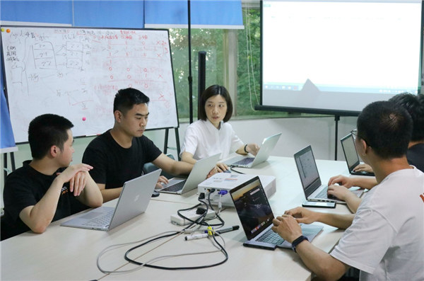 蔡爭真與團(tuán)隊(duì)討論方案。向詩佳攝