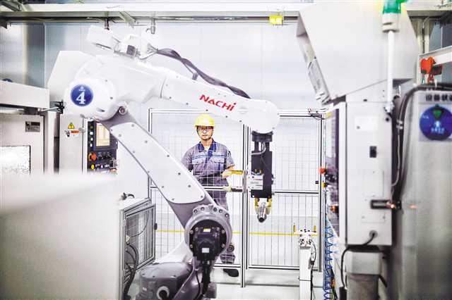 6月15日,璧山區(qū)高新區(qū),重慶藍(lán)黛動(dòng)力傳動(dòng)機(jī)械股份有限公司生產(chǎn)車間,工人正在監(jiān)測(cè)全自動(dòng)生產(chǎn)線生產(chǎn)情況。