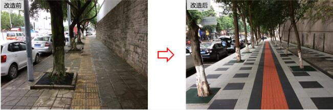 經(jīng)過市住房城鄉(xiāng)建委等多部門多次協(xié)調(diào),最終采用現(xiàn)狀圍墻重建的方式 ,將華渝廠圍墻向后退4.5米,新建起一條長約300米、寬約4.5米的人行道,打通了龍山大道人行道系統(tǒng),徹底解決了因人行道缺失導(dǎo)致的人車混行問題。完善的人行道鋪裝和道路綠化,也提升了人行交通品質(zhì)。