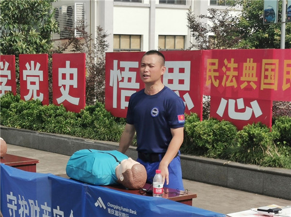活動現場進行急救知識講解。重慶坤源衡泰律師事務所供圖