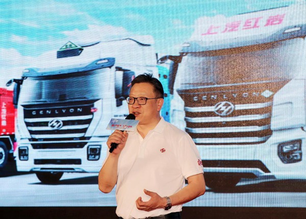 上汽紅巖汽車有限公司總經(jīng)理樓建平在發(fā)布會上講話。上汽紅巖汽車有限公司供圖