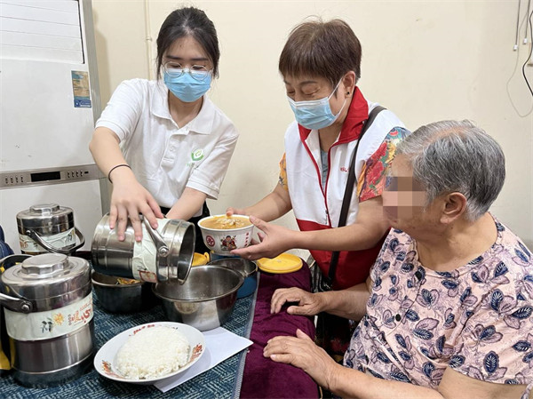 志愿者為獨(dú)居老人準(zhǔn)備愛心餐食及飲用水。甘靖雯攝