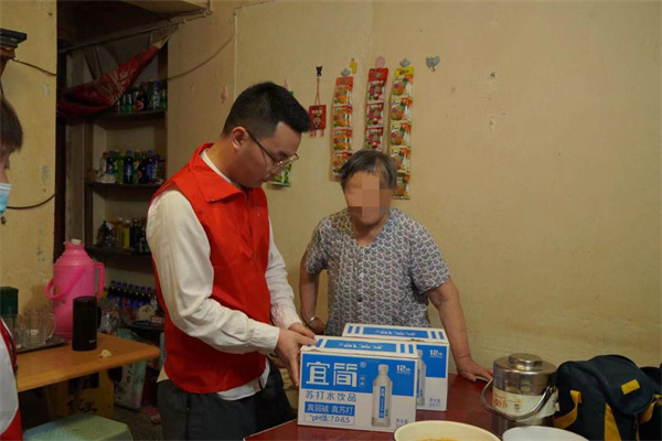 志愿者為獨(dú)居老人送來愛心飲用水。甘靖雯攝