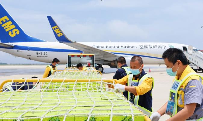 人民網(wǎng)重慶7月2日電 (陳琦、劉敏)7月2日,滿載著18噸巫山脆李的中國郵政航空公司波音B737全貨機,從重慶巫山機場飛往南京,標志著重慶巫山機場開通的首條全貨運包機航線正式起航,也拉開了2022年重慶巫山機場首季“脆李航班”的運輸序幕。