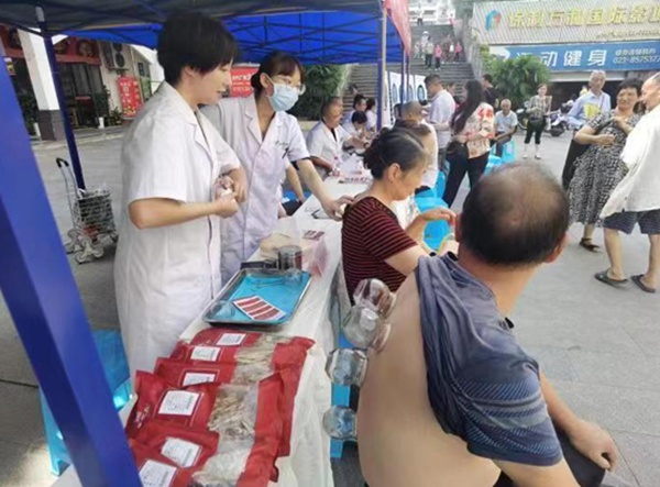 一大早,廣場大屏幕上就播放起了宣傳片,形象展示了近年來石柱縣中醫(yī)藥事業(yè)發(fā)展成果?;顒釉陂_場表演《中醫(yī)療養(yǎng)保健操》中拉開序幕。縣中醫(yī)院10名醫(yī)護人員的精彩表演,吸引了過往市民朋友的駐足觀看和模仿練習,中醫(yī)藥知識競答環(huán)節(jié),群眾競相搶答,場面熱烈。義診服務區(qū)早早排起了長龍,來自山東省淄博市的對口幫扶專家王蒙、鄭向藝,縣級名中醫(yī)黎克平、劉建明等中醫(yī)專家現(xiàn)場把脈問診,為群眾提供中醫(yī)藥健康咨詢和義診。中醫(yī)適宜技術體驗區(qū)內,縣中醫(yī)院針灸、康復、中醫(yī)美容等重點特色科室醫(yī)護人員現(xiàn)場為群眾提供推拿、拔罐等中醫(yī)藥適宜技術體驗。在中藥飲片展示區(qū),市民朋友們不僅能直觀看到黃精、麥冬等常用中藥材到底長啥樣,還能現(xiàn)場學習藥工師傅加工炮制中藥飲片。