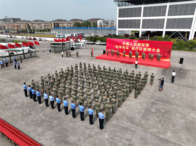 “和平列車”醫(yī)療隊誓師大會現(xiàn)場。曾理攝