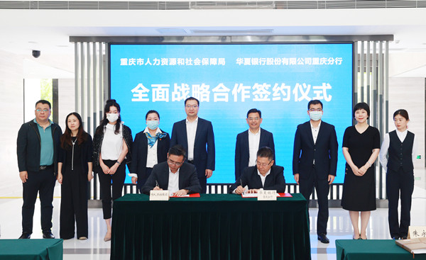 華夏銀行重慶分行與重慶市人力資源和社會(huì)保障局簽訂全面戰(zhàn)略合作協(xié)議。華夏銀行重慶分行供圖