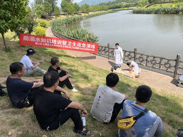 為強(qiáng)化暑期安全防范意識(shí),提升轄區(qū)群眾對(duì)防溺水知識(shí)的認(rèn)識(shí)和溺水自救技能水平,同時(shí)強(qiáng)化醫(yī)務(wù)人員應(yīng)對(duì)突發(fā)事件的快速反應(yīng)能力和救援實(shí)戰(zhàn)技能,近日,七塘鎮(zhèn)衛(wèi)生院在七塘鎮(zhèn)建設(shè)村楊家橋開(kāi)展防溺水知識(shí)培訓(xùn)暨衛(wèi)生應(yīng)急演練。醫(yī)務(wù)人員對(duì)如何正確穿著救生衣、溺水如何自救等知識(shí)進(jìn)行詳細(xì)講解,并現(xiàn)場(chǎng)模擬落水、救援、心肺復(fù)蘇等衛(wèi)生應(yīng)急急救全過(guò)程。