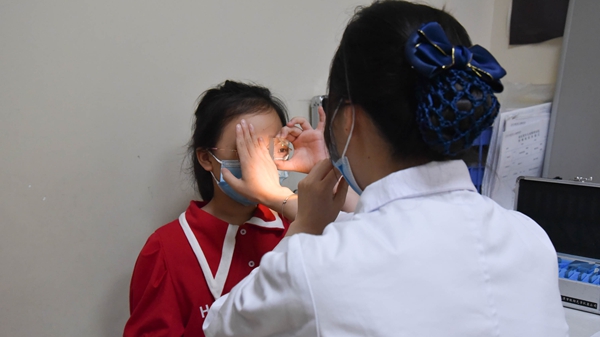 術(shù)前檢查。重慶愛爾兒童眼科醫(yī)院供圖