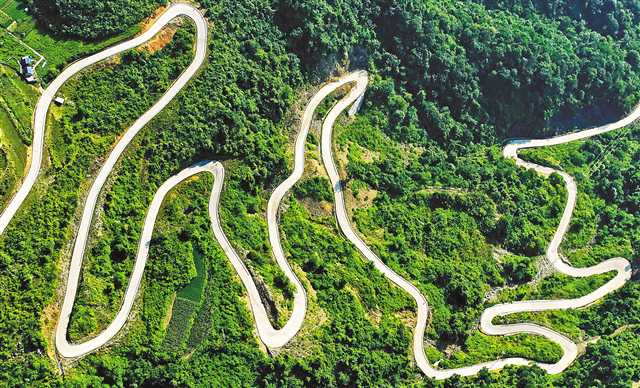 7月25日,無人機拍攝的酉陽車田鄉(xiāng)盤山公路。特約攝影 陳碧生/視覺重慶