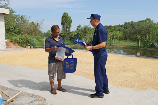 秋收時節(jié)宣傳活動中,大足區(qū)消防救援支隊宣傳人員走進(jìn)田間地頭、農(nóng)戶家中、小區(qū)曬壩、收割機(jī)集中點(diǎn)等地,廣泛宣傳稻谷收割機(jī)消防安全常識、秋收季節(jié)火災(zāi)特點(diǎn)、高溫天氣防火注意事項等知識;通過發(fā)放消防宣傳資料向廣大農(nóng)戶進(jìn)行消防安全提示,面對面宣講如何正確撥打火災(zāi)報警電話、如何正確使用身邊的滅火器材進(jìn)行初起火災(zāi)撲救、如何正確從火場逃生自救等知識,在轄區(qū)營造了濃厚的消防宣傳氛圍。