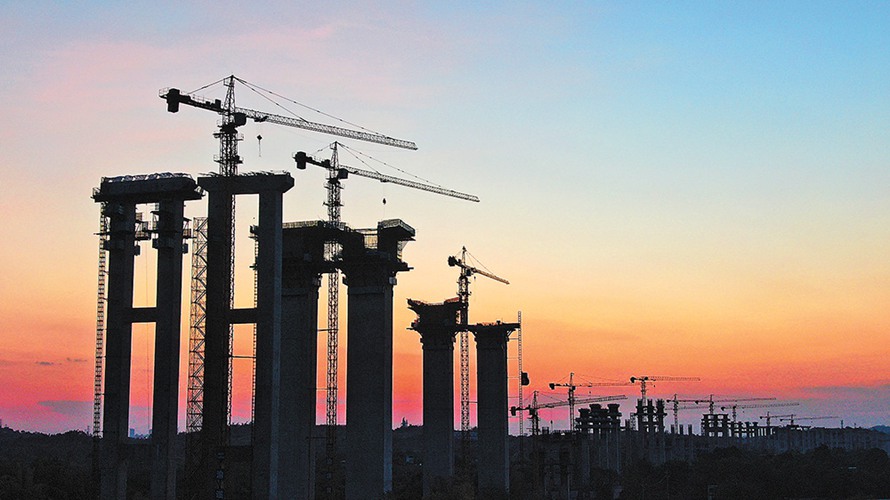 8月23日,渝遂高速復(fù)線北碚至銅梁段控制性工程——小安溪特大橋工地,工人正加緊進(jìn)行橋梁上部結(jié)構(gòu)施工。