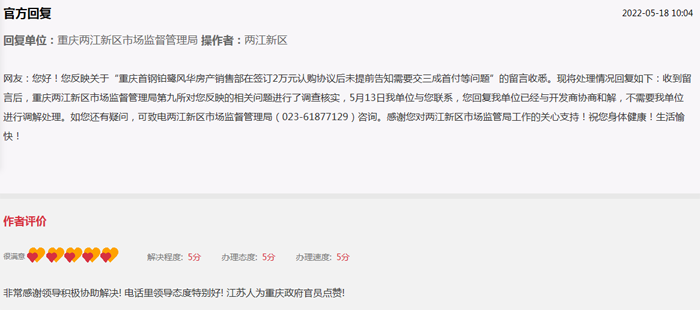 辦得好|購房遭遇“首付兩成”陷阱獲解決 網(wǎng)友留言點贊