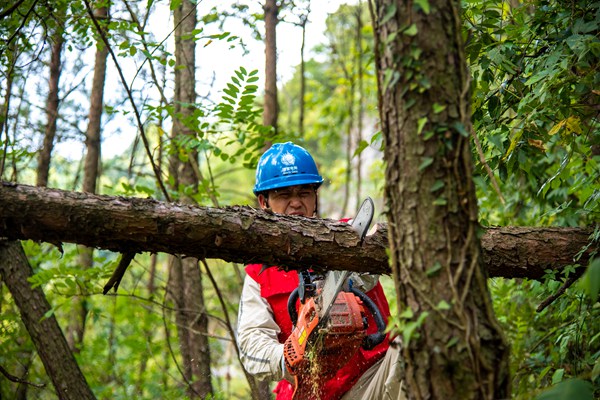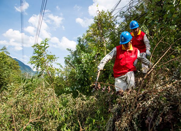 8月23日,國(guó)網(wǎng)城口供電公司員工在小河口清理樹障。牟丹陽(yáng)攝