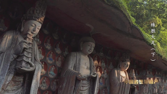 作為“國(guó)家文化記憶和傳承”——中國(guó)的世界遺產(chǎn)記錄傳播項(xiàng)目,紀(jì)錄片《殊勝大足》分為上下集,全片長(zhǎng)50分鐘,由重慶電視臺(tái)科教頻道承制。該片近期在央視國(guó)際頻道首播后,又在央視綜合頻道晚間黃金時(shí)段播出,引發(fā)收視熱潮,受到廣泛好評(píng)。之所以向朋友們苦口婆心地推薦紀(jì)錄片《殊勝大足》,是因?yàn)樵谖铱磥?lái),該片以宏闊的視野追源溯流、探本求真,全方位、全景式展現(xiàn)了世界文化遺產(chǎn)——大足石刻的來(lái)龍去脈、前世今生,是一部了解探究大足石刻的影像教科書,觀看這樣一部思想性、藝術(shù)性、觀賞性俱佳的紀(jì)錄片精品,更能激發(fā)人們親眼目睹大足石刻恢弘盛景的熱情和渴望。