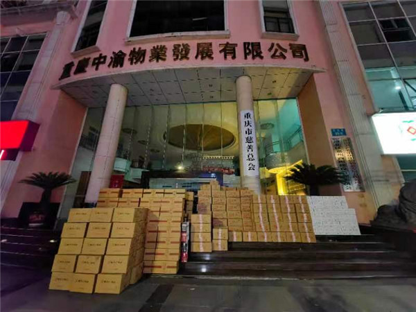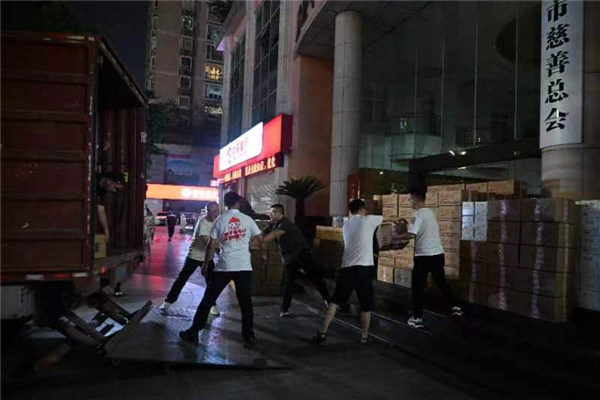 6日晚20時20分,重慶市慈善總會樓下,所有捐贈物資均已就位,慈善總會工作人員同愛心企業(yè)一道,將一箱箱愛心物資進(jìn)行裝車。