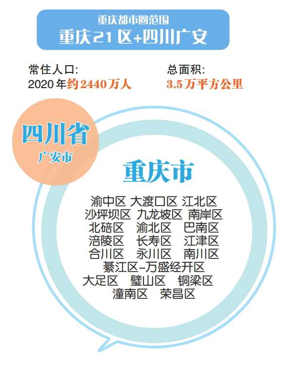- 重慶都市圈:重慶21區(qū)+四川廣安
