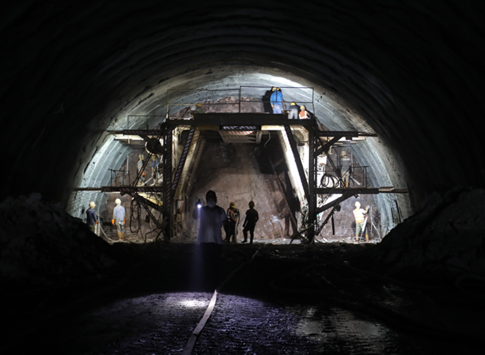 平橋隧道內(nèi)施工現(xiàn)場(chǎng)。中鐵開投重慶高速公路指揮部供圖