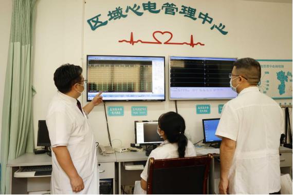 網(wǎng)絡(luò)遠(yuǎn)程動(dòng)態(tài)心電實(shí)時(shí)監(jiān)測(cè)現(xiàn)場(chǎng)。重慶西區(qū)醫(yī)院供圖