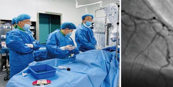 因胸悶、氣促20余天,78歲的原九龍坡區(qū)第二人民醫(yī)院老院長李少晧回到重慶西區(qū)醫(yī)院心臟血管疾病中心治療,經(jīng)冠脈造影檢查診斷為冠狀動脈重度狹窄。住院后因反復(fù)發(fā)作心絞痛,經(jīng)專家會診考慮急性冠脈綜合征,建議立即介入手術(shù)安裝支架治療??紤]到患者有高齡、貧血、血小板減少等高風(fēng)險(xiǎn)因素,經(jīng)充分醫(yī)患溝通和術(shù)前準(zhǔn)備后,推入介入治療中心完成冠脈造影+回旋支支架植入術(shù),安全返回病房。目前李少晧已經(jīng)痊愈出院,出院時用力拍打著胸脯說,猶如心臟“第二春”,感覺非常棒。