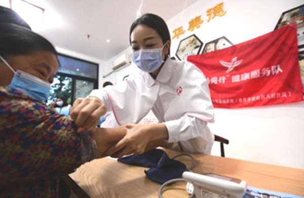 測量血壓。重醫(yī)附屬璧山醫(yī)院供圖
