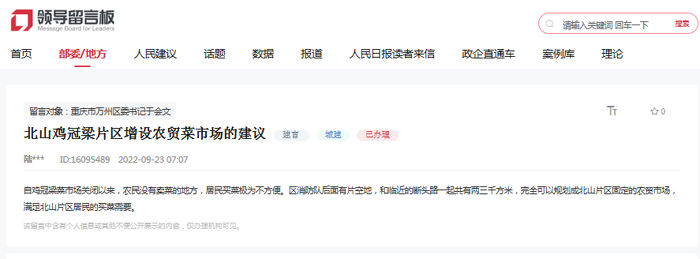 人民建議|菜市場關(guān)停后買菜不便 重慶萬州:已規(guī)劃選址新建