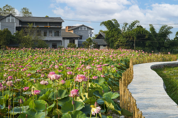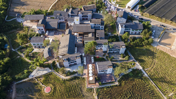 幾十棟小樓,磚墻青瓦,錯(cuò)落有致。推開窗,遠(yuǎn)山蒼翠,花海、稻田成片。