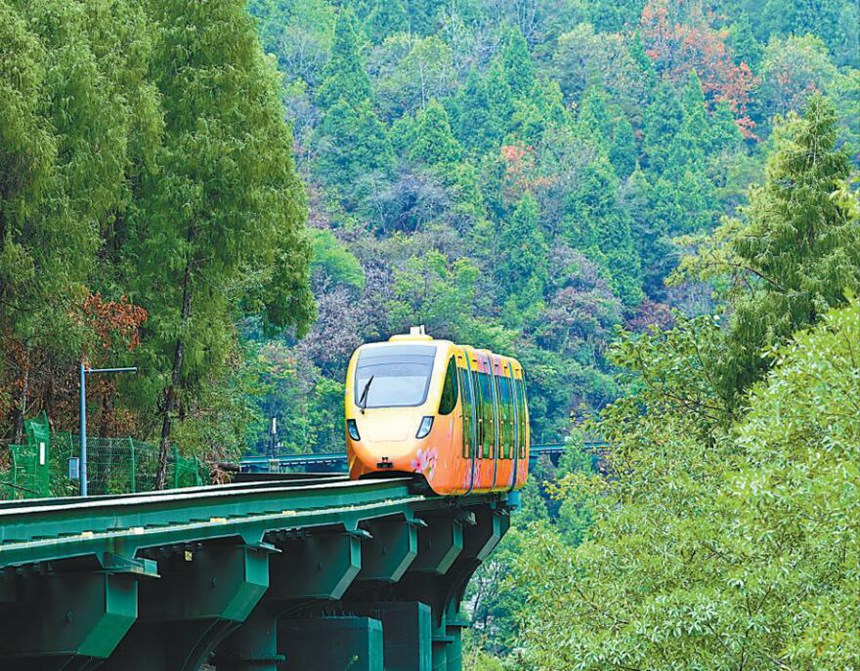 近年來(lái),重慶市酉陽(yáng)土家族苗族自治縣推動(dòng)旅游產(chǎn)業(yè)發(fā)展,帶動(dòng)群眾增收致富。今年上半年全縣接待游客549萬(wàn)人次,旅游綜合收入實(shí)現(xiàn)同比增長(zhǎng)。圖為近日,一輛軌道觀光車(chē)在該縣桃花源國(guó)家森林公園內(nèi)行駛。
