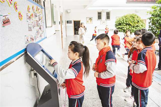 10月14日,萬(wàn)盛經(jīng)開(kāi)區(qū)和平小學(xué),同學(xué)們正通過(guò)終端機(jī)兌換積分。今年,該校入圍全市“小學(xué)生成長(zhǎng)過(guò)程評(píng)價(jià)改革試點(diǎn)項(xiàng)目”。學(xué)校嘗試建立“善美、慧美、健美、雅美、創(chuàng)美”五美綜合評(píng)價(jià)體系,以積分獎(jiǎng)勵(lì)的方式,把學(xué)生的習(xí)慣養(yǎng)成、道德品行、身心健康、學(xué)業(yè)水平、藝術(shù)教育、勞動(dòng)實(shí)踐等要素納入成長(zhǎng)評(píng)價(jià)。在每個(gè)學(xué)期期末,根據(jù)學(xué)生各項(xiàng)獲得的積分,進(jìn)行“數(shù)字畫(huà)像”,為學(xué)生發(fā)展提出個(gè)性化建議。