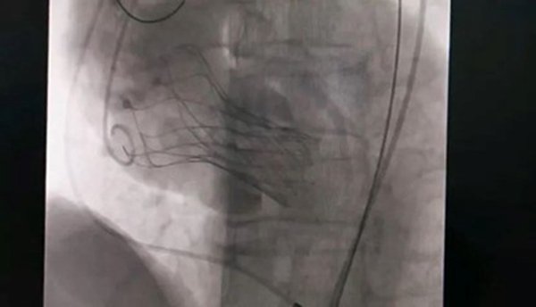 10月18日,該患者實(shí)施手術(shù),在新橋醫(yī)院專家的指導(dǎo)下,心血管內(nèi)科主任宋明寶帶領(lǐng)團(tuán)隊(duì)把瓣膜置入心臟。