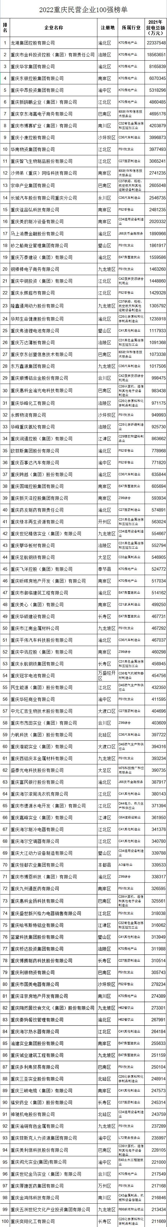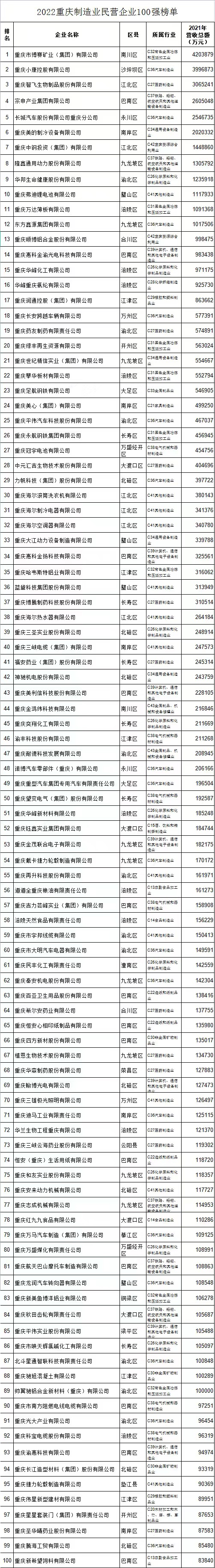 附:2022重慶民營(yíng)企業(yè)100強(qiáng)榜單;2022重慶制造業(yè)民營(yíng)企業(yè)100強(qiáng)榜單。