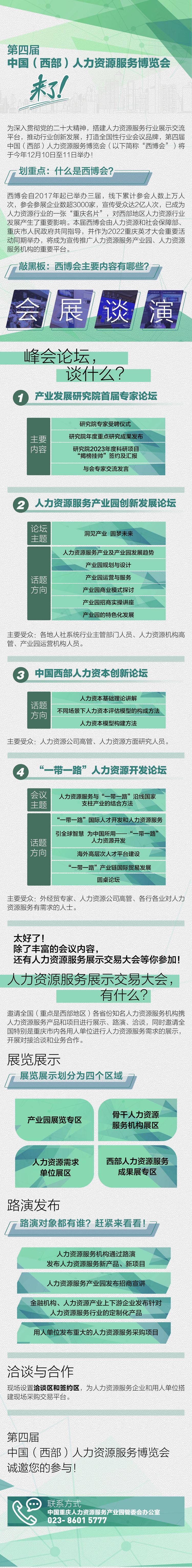中國重慶人力資源服務產業(yè)園管委會消息,作為2022重慶英才大會的重要活動之一,第四屆中國(西部)人力資源服務博覽會(以下簡稱“西博會”)將于今年12月10日至11日在重慶國際博覽中心舉行。