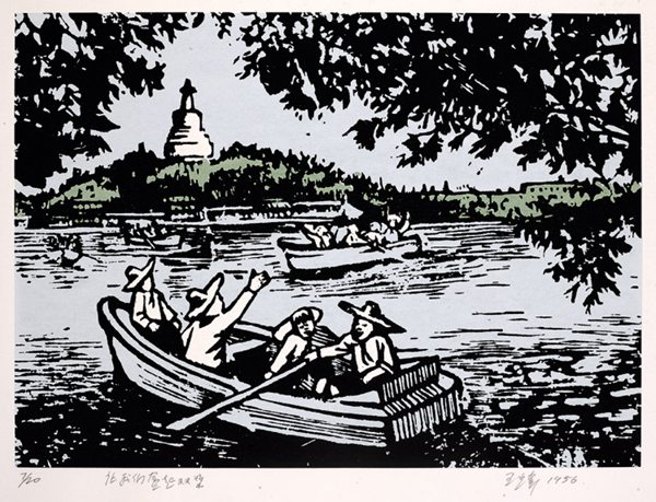 讓我們蕩起雙槳 套色木刻 52cm×37.5cm 王煒 1956年