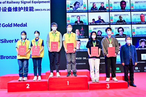 重慶運(yùn)輸職院學(xué)代表隊(duì)奪得2022年金磚國家職業(yè)技能大賽鐵路信號(hào)設(shè)備維護(hù)技能賽項(xiàng)一等獎(jiǎng)。重慶運(yùn)輸職院供圖
